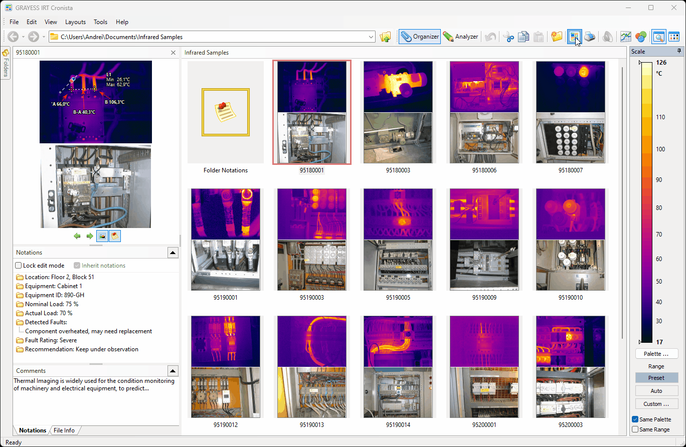IRT Cronista is your comprehensive solution for infrared imaging tasks. It effortlessly integrates image management, in-depth analysis, and report generation into a seamless experience, allowing professionals to focus more on fieldwork and less on paperwork.